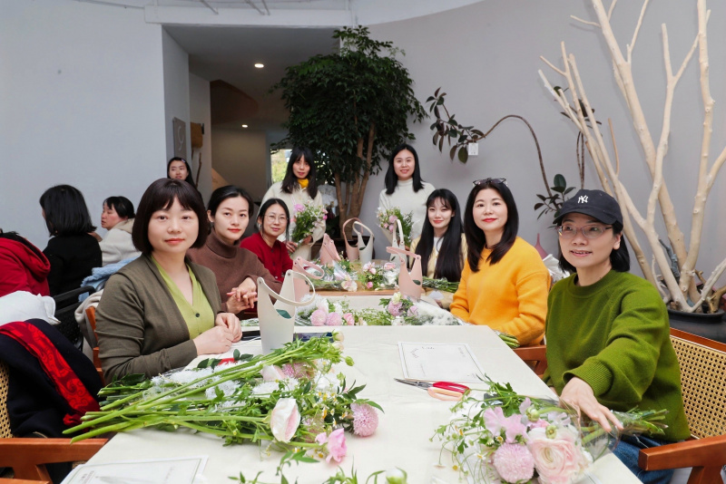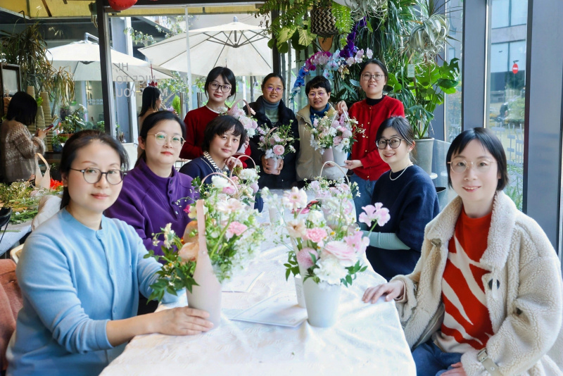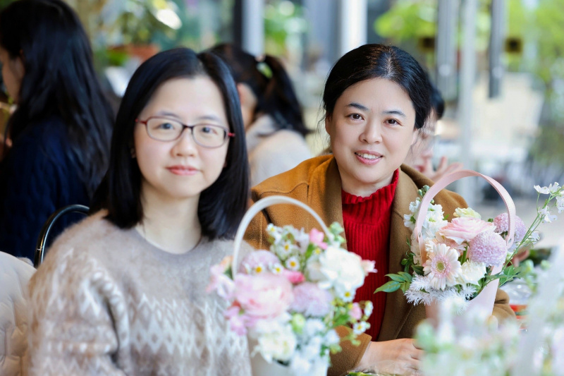 在杭州藝創小鎮的“花植潤心”活動現場,專業花藝師系統講解了插花藝術的基本技法,重點圍繞花材甄選、色彩搭配與造型設計等核心要素進行專業指導,女職工們從花材搭配到造型構思,巧妙設計了手提小花籃,大家以花藝舒緩壓力、潤澤心靈,展現了剛柔并濟的女性特質。