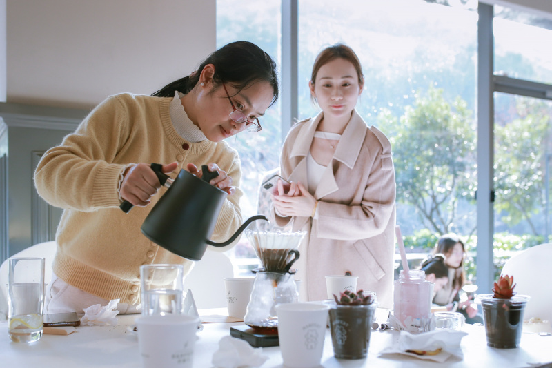在“啡香凝力”活動現場,咖啡講師以咖啡文化為載體,詳細講解了咖啡豆甄選、水溫調控、研磨技巧及沖泡手法等手沖咖啡全流程工藝。活動現場創新設置環保實踐環節,將咖啡沖泡之后的咖啡渣轉化為綠色肥料用來種植多肉植物,在咖啡與綠植的循環中踐行環保理念。