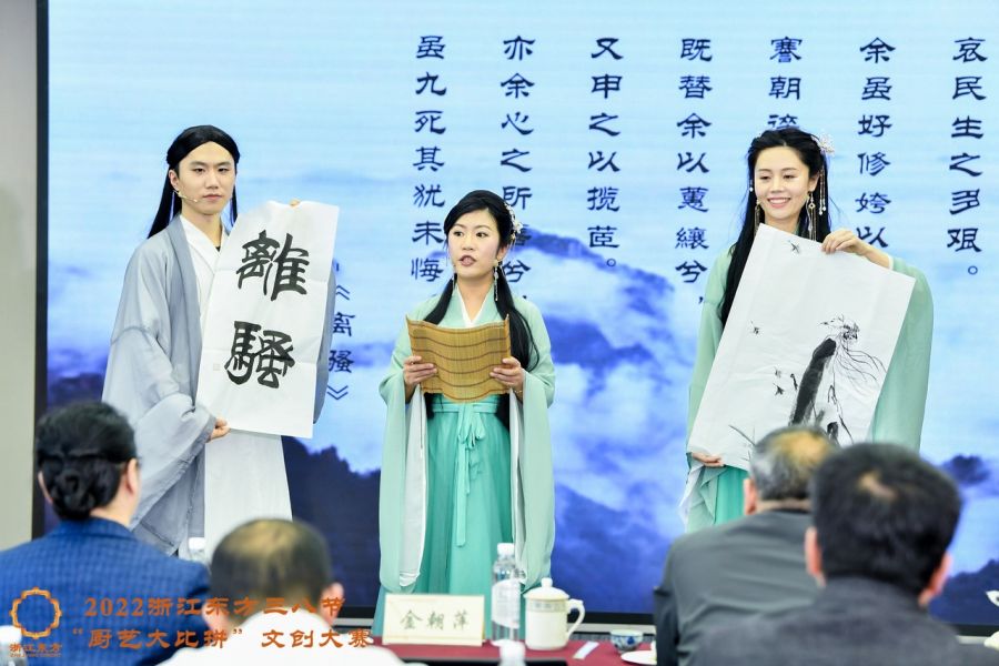 為迎接三八國(guó)際勞動(dòng)?jì)D女節(jié),浙江東方舉辦老菜新做“廚藝大比拼”文化創(chuàng)意大賽,全程同步直播,展示了中華民族歷代愛(ài)國(guó)人士家鄉(xiāng)特色菜肴,講述菜品背后歷史文化,演繹愛(ài)黨愛(ài)國(guó)傳奇故事,弘揚(yáng)民族精神。公司黨委書記、董事長(zhǎng)金朝萍,黨委副書記、董事陳鑫云,工會(huì)主席裘高堯出席本次活動(dòng)。活動(dòng)邀請(qǐng)省國(guó)貿(mào)集團(tuán)綜合監(jiān)督部(黨委巡察辦公室)及女工委主任張進(jìn)智,工會(huì)副主席、工會(huì)辦公室副主任孫森偉及浙金信托、大地期貨工會(huì)相關(guān)負(fù)責(zé)人擔(dān)任比賽評(píng)委。